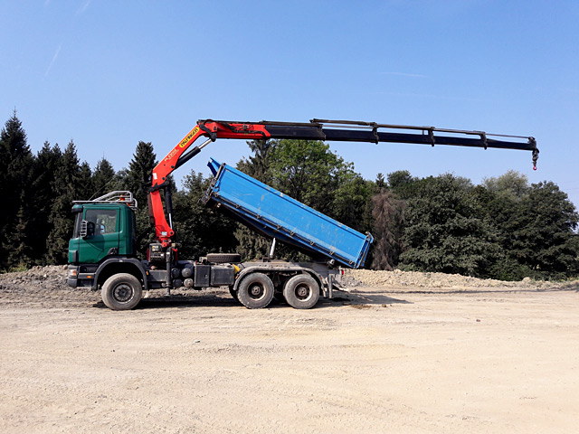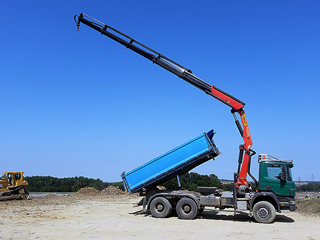 Naše nákladní vozy s hydraulickým ramenem umožňují komplexní práce na místě: naložení, složení a manipulaci s nákladem. Díky hydraulické ruce naložíme a převezeme materiál bez potřeby dalších stavebních strojů. Hydraulická ruka je využitelná při všech manipulacích s břemenem o váze 5,5 tuny v dosahu 3 metrů.