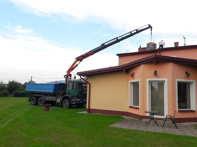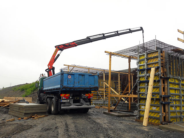 Přeprava sypkých materiálů, paletových stavebních materiálů, přeprava menších stavebních strojů, jeřábnické práce s bočním dosahem 15 m a do výšky max. 18 metrů.